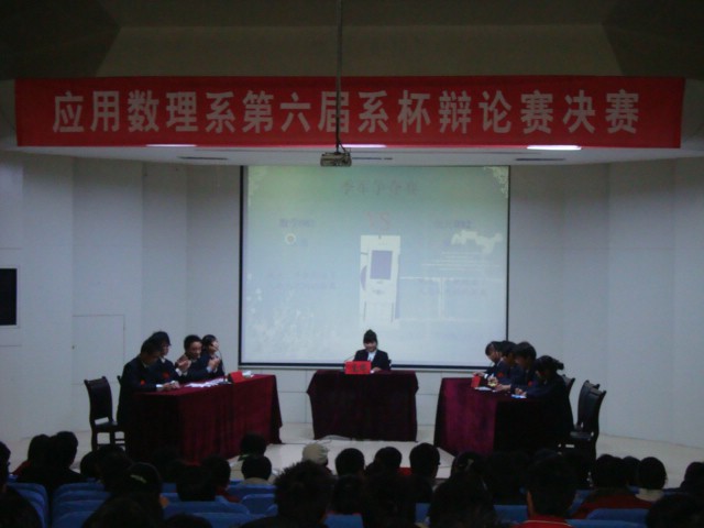 2009126,应用数理系第六届“系杯”辩论赛决赛在学术报告厅隆重举行。各兄弟系辩论赛最佳辩手应邀担任本次比赛的评委,应用数理系党总支副书记水心宝,团总支副书记梁雪松和各系学生会主席观看了比赛。