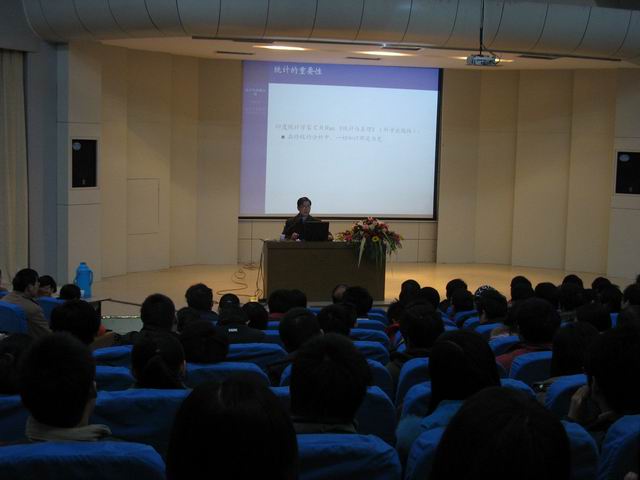 此前,1月8日下午,缪柏其教授和胡太忠教授在学术报告厅为我系师生分别作了题为《统计与金融》和《Chebyshev不等式》的报告,两位教授分别结合自身在统计学方面的研究成果,通过统计学在实际中的应用,介绍了统计理论的相关知识。互动环节中,针对同学们对统计学的浓厚兴趣,两位教授做了细致的回答,现场气氛热烈。
