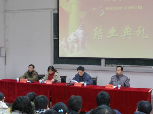 2010年1月8日下午,机电学院分党校第六期党课教育培训班结业典礼在2教报告厅隆重举行。安徽工程科技学院宣传部部长苏国红,机电学院领导汪学骞、陈其峰、伊长文等出席典礼。典礼由机电学院副院长、分党校校长陈其峰主持。