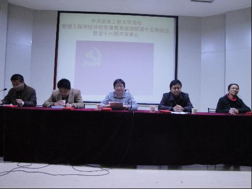 4月7日,管理工程系第十五期党课培训班结业暨第十六期党课培训班开学典礼在学术报告厅隆重举行。莅临典礼的有管理工程系党总支书记、系分党校校长吴家骅老师,系党总支副书记张开炳老师,系学生第一党支部书记黄桂琴老师,第三党支部书记徐晓平老师。开学典礼由第十六期党课培训班班主任沈明领老师主持。