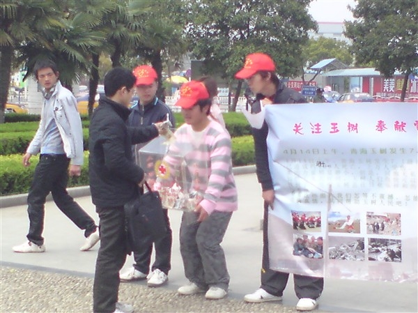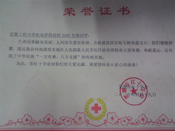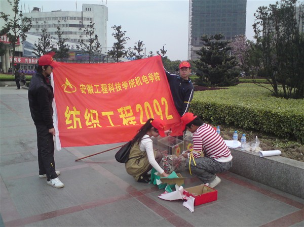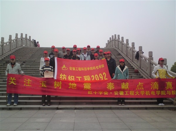 2010年4月17日,机电学院纺织2092班主动联系芜湖市红十字会并在芜湖火车站成功开展了“为玉树地震募集善款”的活动。