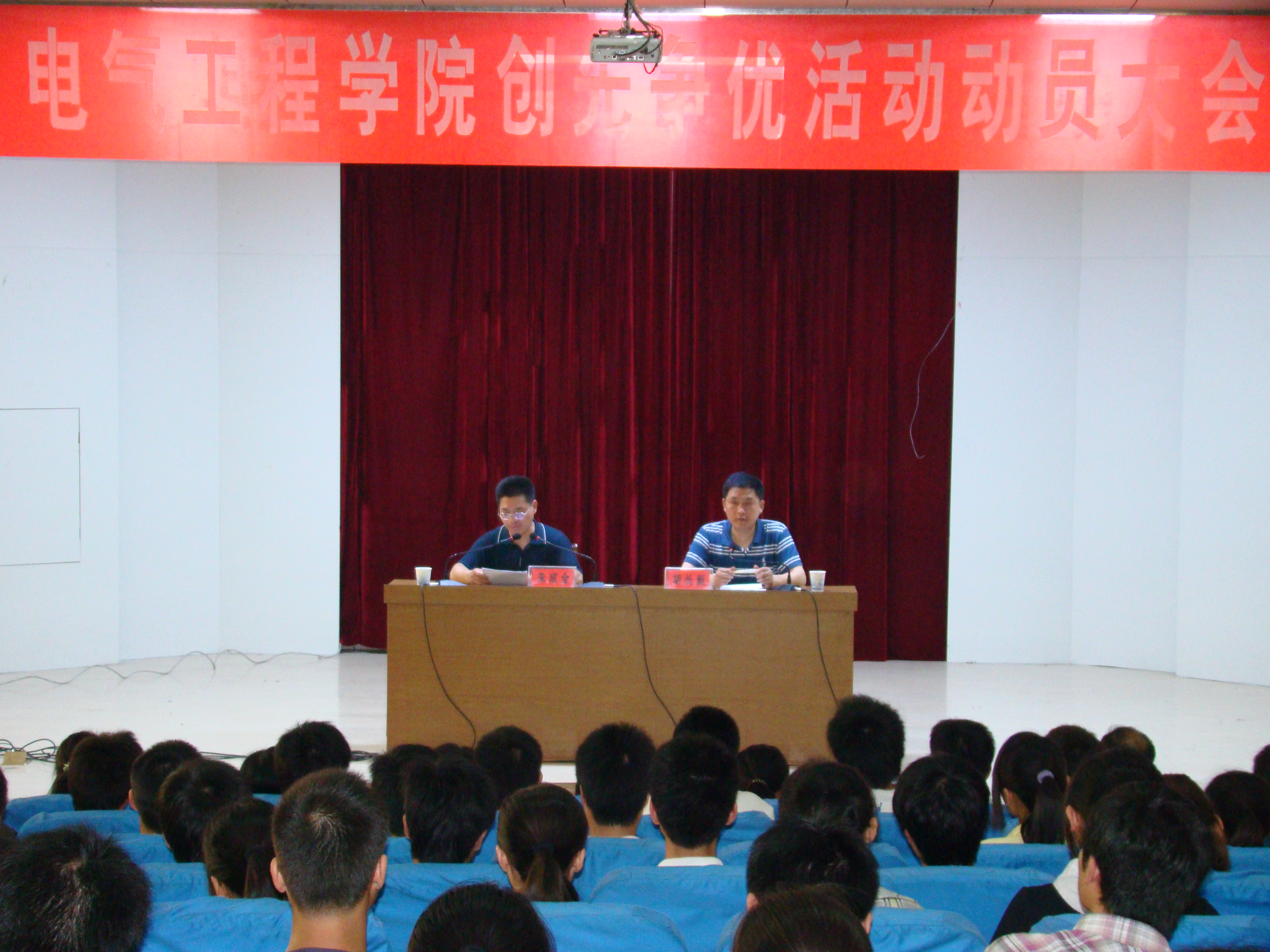 617下午,电气工程学院在学术报告厅召开创先争优活动动员大会,全院师生党员和本期党校培训班学员300余人参加了大会。学院党委书记朱成全作了题为《争创一流,争当先锋,为提升学院内涵建设水平做贡献》的动员报告。会议由学院党委副书记胡长新主持。