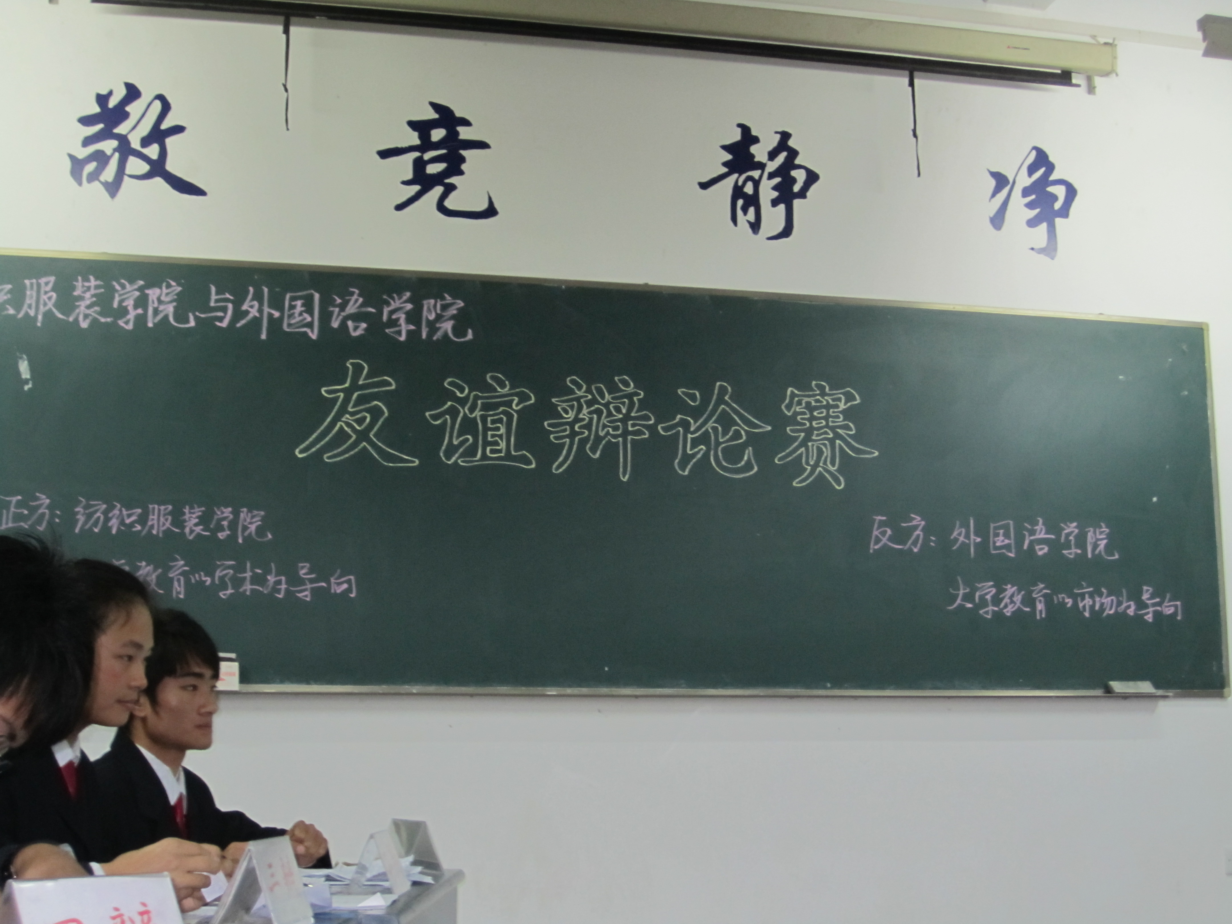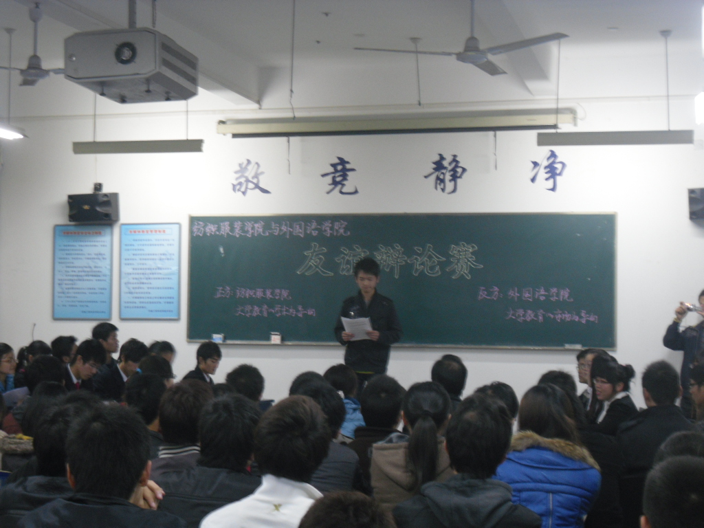 11月29,纺织服装学院与外国语学院入党积极分子培训班友谊辩论赛,9J101教室隆重举行。