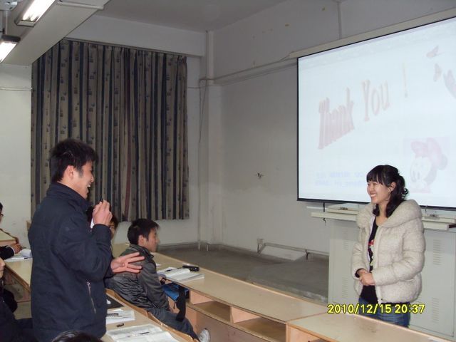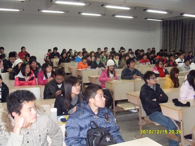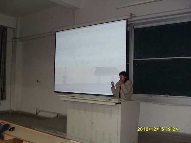 20101215日晚,应学生处邀请,安徽中医药高等专科学校大学生心理健康教育中心的耿玉洁老师在我校举行了主题为“大学生爱情心理漫谈”的讲座。2010级部分班级心理健康委员、大学生心理协会成员代表以及对此主题感兴趣的同学参加了本次活动。