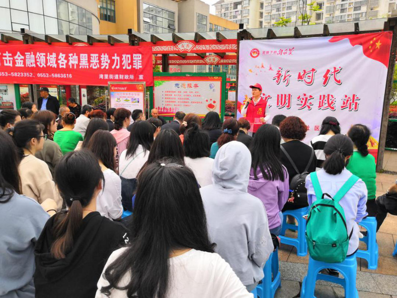 为大力宣传扫黑除恶行动的重要意义,增强廉政文化的基层渗透力,更好地推动扫黑除恶行动深入开展,营造全民参与、惩恶扬善的浓厚氛围。4月24日下午,管理工程学院工管学生支部与华强社区党委联合开展了“扫黑除恶与廉政文化”宣讲活动。全体党员在支部书记赵恒梅同志带领下走进湾里街道华强社区,在社区中心广场与社区的党员、居民、芜湖科技馆的党员同志们一同参与到社区新时代文明实践站的建设中来,开展了此次“扫黑除恶与廉政文化”主题宣讲活动。