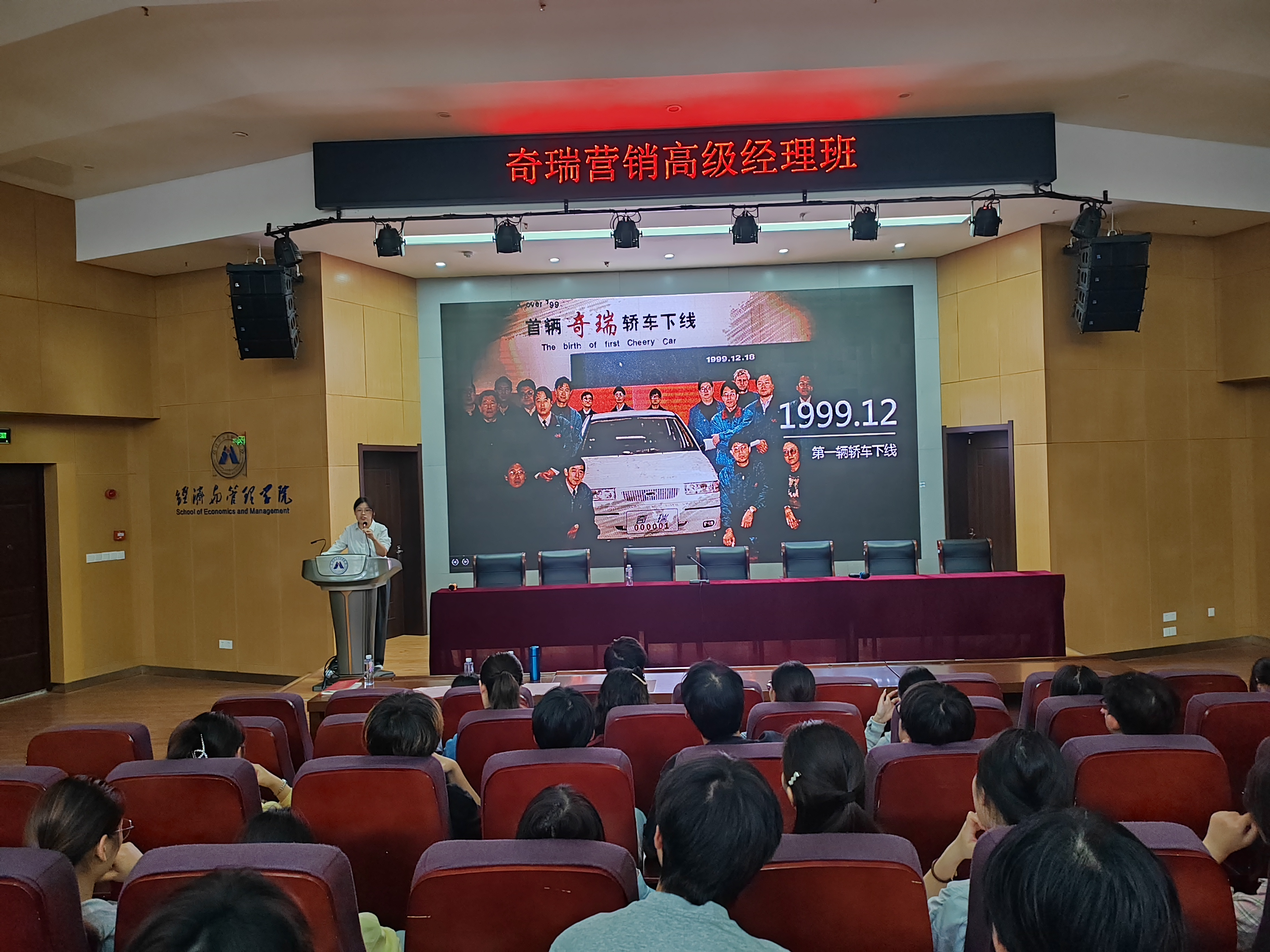 仪式上,经济与管理学院市场营销系副主任刘畅介绍了新媒体微专业培养基本情况,学生代表陈小青作了发言。仪式结束后,全体学员聆听了由奇瑞国内事业群高级培训运营经理柏元元主讲的新媒体微专业第一课《奇瑞品牌文化》。