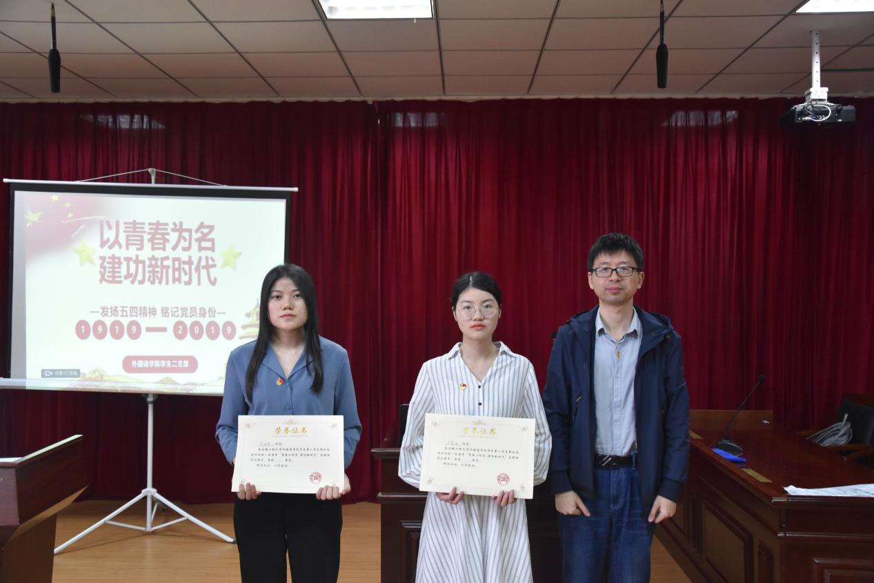 八位参赛党员分别从自己的读书有感和成长经历等角度,阐释了自己对爱国、进步、民主、科学等五四精神的理解和体悟,决心从自身做起,坚持学思践悟,体现党的先进性,发挥先锋模范作用。来自英语162班的李佩蓉同学在比赛中表现优异,最终拔得头筹。她说:“青年是最富朝气、最能创新、最擅开拓的社会力量,倡议同学们脚踏实地,为自己的梦想拼搏,为中华民族伟大复兴的中国梦奋斗,以青春之我,书写祖国的绚丽华章”,获得了在场青年学子的深切共鸣。