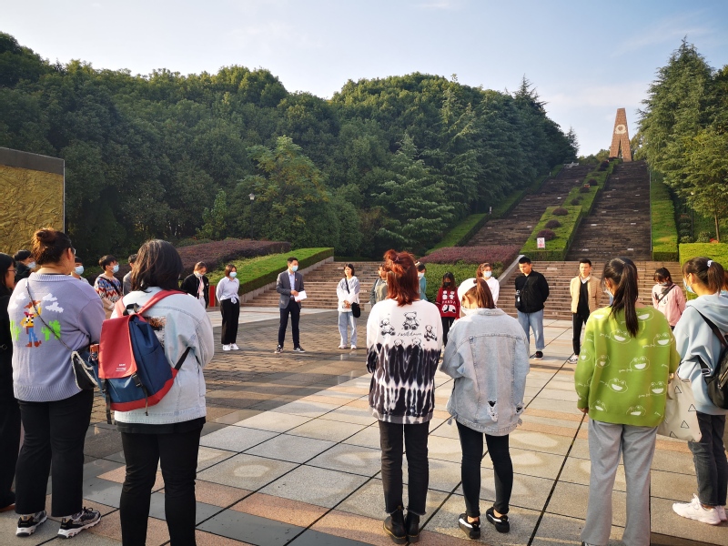 为学习贯彻习近平总书记视察安徽讲话精神,切实加强初心教育,20201021日,外国语学院学生第一党支部组织学生党员、入党积极分子、入党申请人前往芜湖市烈士陵园开展实践活动。实践活动由党支部书记张君带队。
