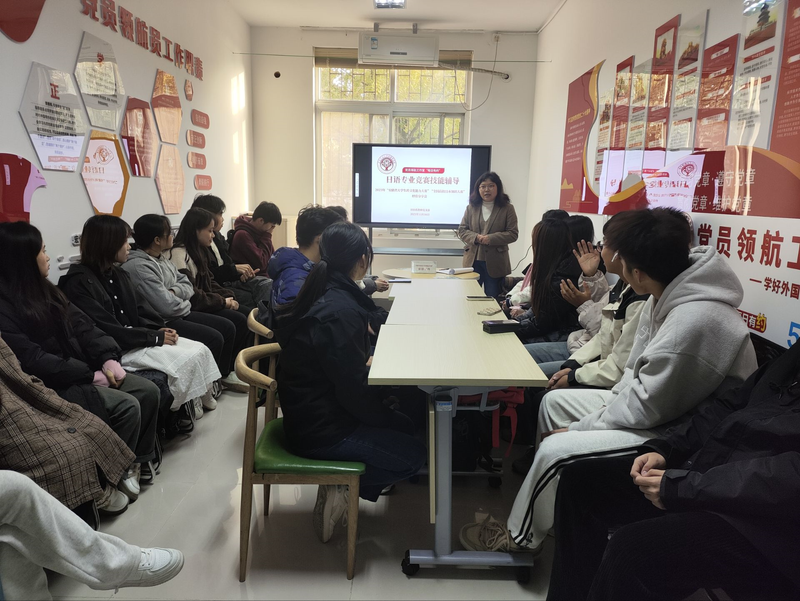 11月16日下午,外国语学院在学生社区举行日语专业竟能竞赛专题辅导。学院党员领航工作室成员、日语系博士党员曹银阁带领优秀学生代表走进社区,为大一、大二年级的同学们作参赛指导,三十余名学生主动报名参加了交流分享会。