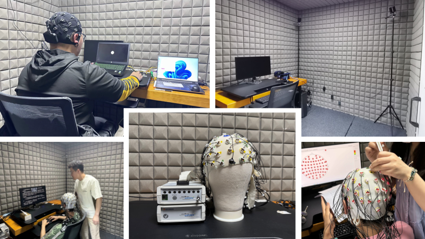 本实验室配备了来自德国的Brain Products脑电设备和美国Smarting Pro便携式脑电仪,能够实时监测大脑活动。同时,实验室还配备了Scan、AnalyzerMatlab等脑电分析和溯源软件。脑电技术通过记录神经元放电产生的电信号,并将其转化为可视化数据,其突出优势在于极高的时间分辨率,能够以毫秒级捕捉大脑活动的变化,非常适合分析语言处理、认知任务和情感反应等领域的表现。在语言相关的科学研究与教学研究方面,实验室的贡献尤为显著。通过对汉语语音、词汇、句法、语用等语言层面的研究,能够深入揭示大脑如何理解和生成语言。同时,我们还关注二语习得过程中的大脑变化,为语言教学提供生理学依据。此外,实验室针对特殊人群(如失语症患者)开展研究,探讨其大脑活动特征与语言能力之间的关系,从而为临床提供新的视角。